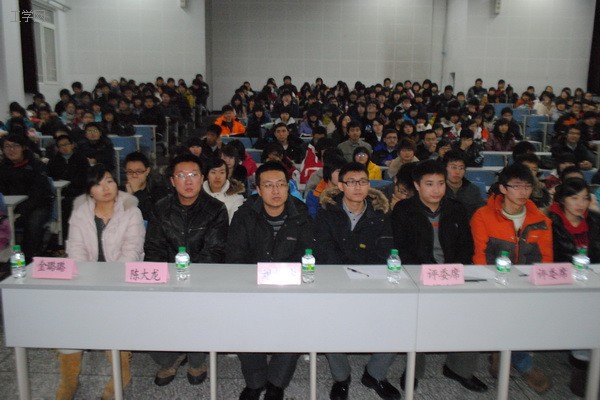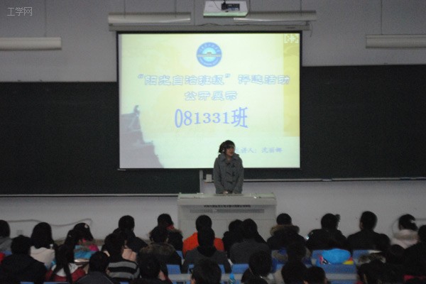 评选活动包括业绩考核和公开展示两个环节。评选现场进行的是公开展示环节。08、09级每班分别派出1-2名代表进行了10分钟的班级展示。展示内容包括班级基本情况、学风建设、班级生活、科技创新、社会实践、团务工作以及班级改组以来取得的成绩等相关内容,各班利用ppt、音频、视频等形式向大家展示了各具特色的班徽、班级文化以及丰富多彩的班级活动。评委根据展示材料,思路清晰程度、语言表达、展示形式及效果、整体印象等方面进行综合打分。最终,081331班和091331班获得“阳光自治班级”的光荣称号。