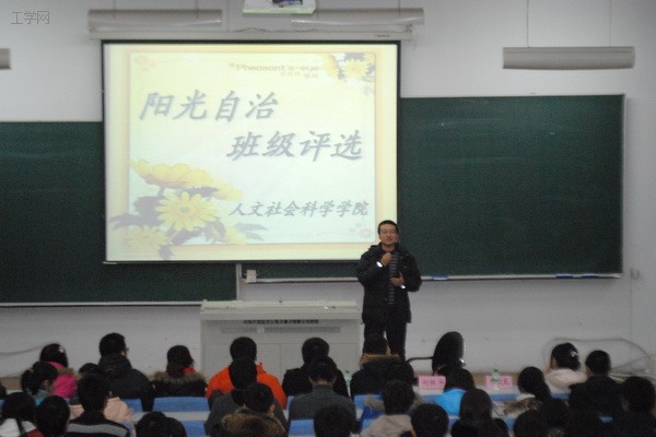 12月19日下午14时,BB贝博艾弗森官方网站在主楼南楼103教室举行“阳光自治班级”评选活动。BB贝博艾弗森官方网站党委副书记刘振宇、BB贝博艾弗森官方网站学生工作办公室主任陈大龙、学生辅导员兼学生会秘书长金璐璐作为活动嘉宾亲临现场。