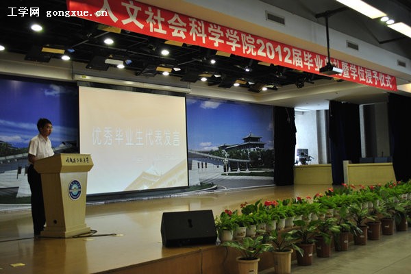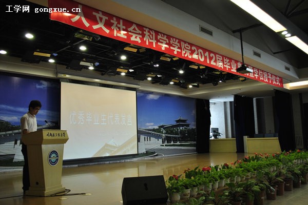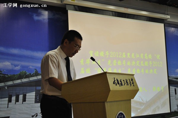 奏唱国歌后,活动进入第二部分――不舍同窗情。在座各位观看了2012届毕业视频《我的大学》并以班级为单位献上《那些年》、《当》、《再见》等歌曲,表达了对母校和同窗情谊的不舍和留恋。接着由刘振宇副书记宣读授予2012届黑龙江省高校“优秀毕业生”光荣称号的决定、授予2012届校“优秀毕业生”光荣称号的决定和2012届博士、硕士研究生毕业的决定以及授予2012届博士、硕士研究生学位的决定。由丁玮同志宣读2012届本科生毕业的决定及授予2012届本科生毕业学位的决定。优秀毕业生代表徐辰、宋成坤同学进行发言。