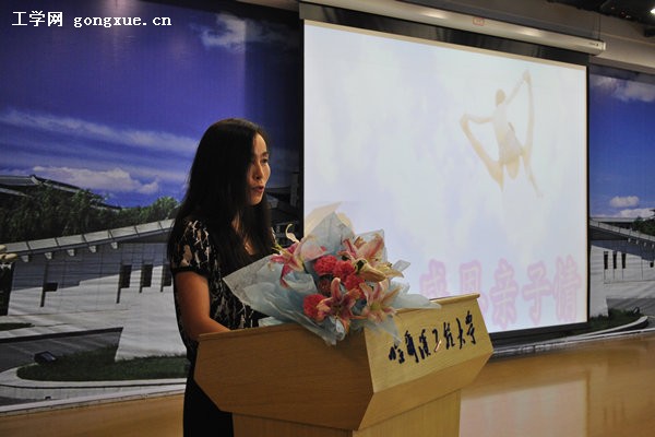 在“难忘师生情”部分,观看学院老师的寄语视频后,毕业生代表向教师代表献礼,感谢恩师深切关怀和无私教诲。教师代表陈晓雷发言。她代表全体教师祝福毕业生,希望毕业生们脚踏实地,继续求索,并学以致用,不断向前,不断奋进。