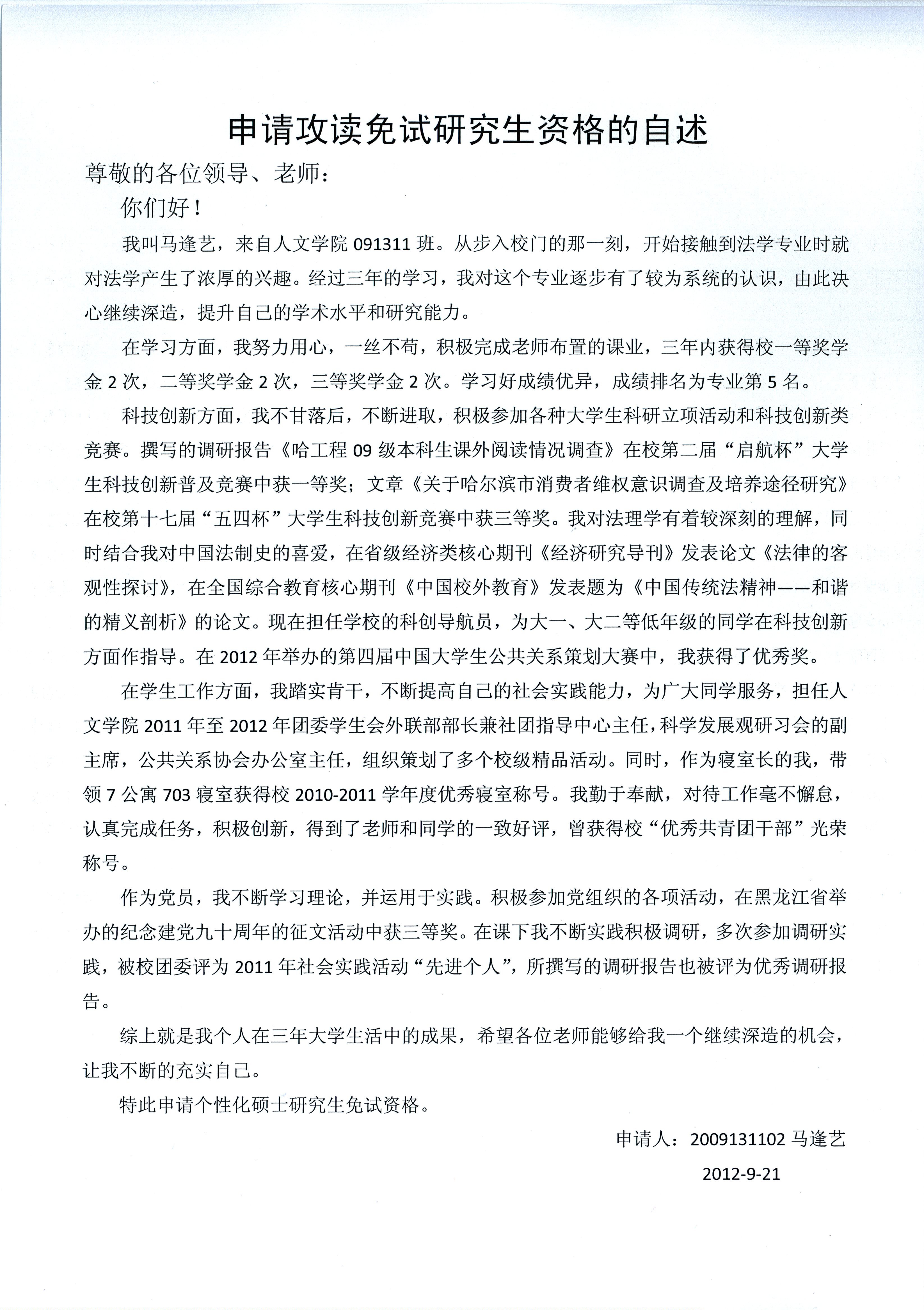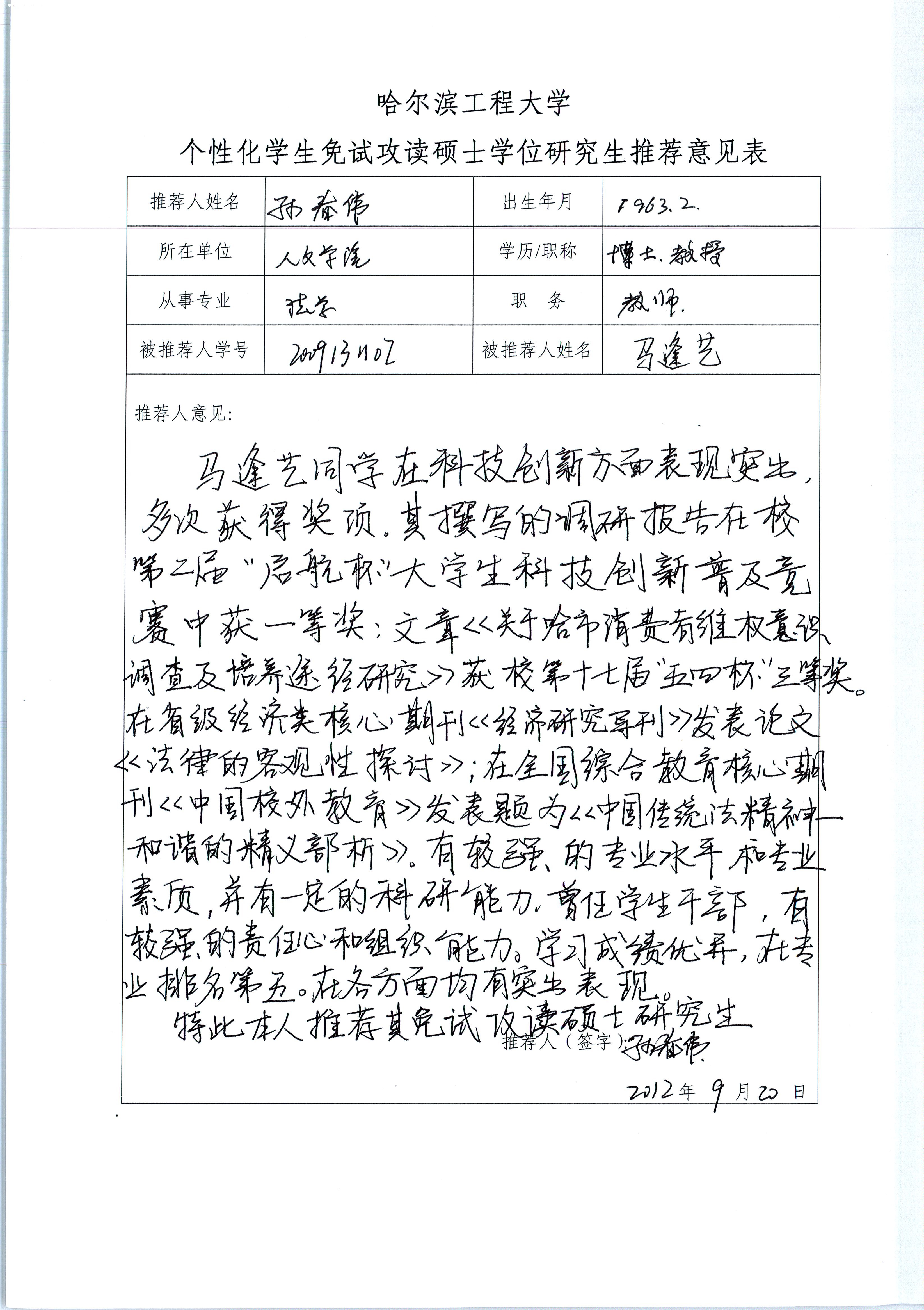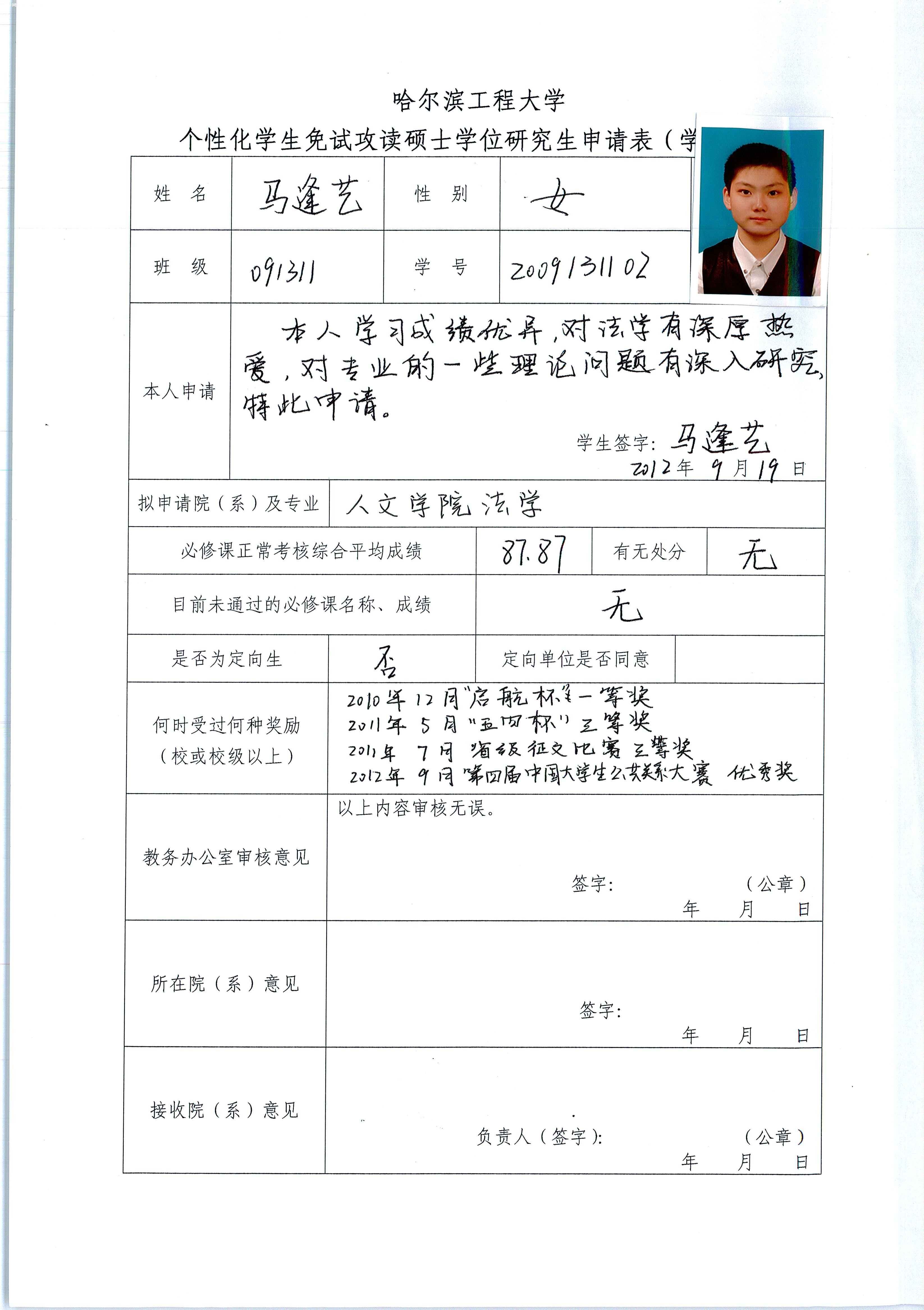 BB贝博艾弗森官方网站推免评审小组于2012年9月25日召开全体会议,推免评审小组共7人,出席7人。经与会成员的充分讨论,同意推荐马逢艺同学参加个性化推免评审,现将其材料予以公示,如有意见请于9月29日前向学院推免工作领导小组反映。电话:82569513。