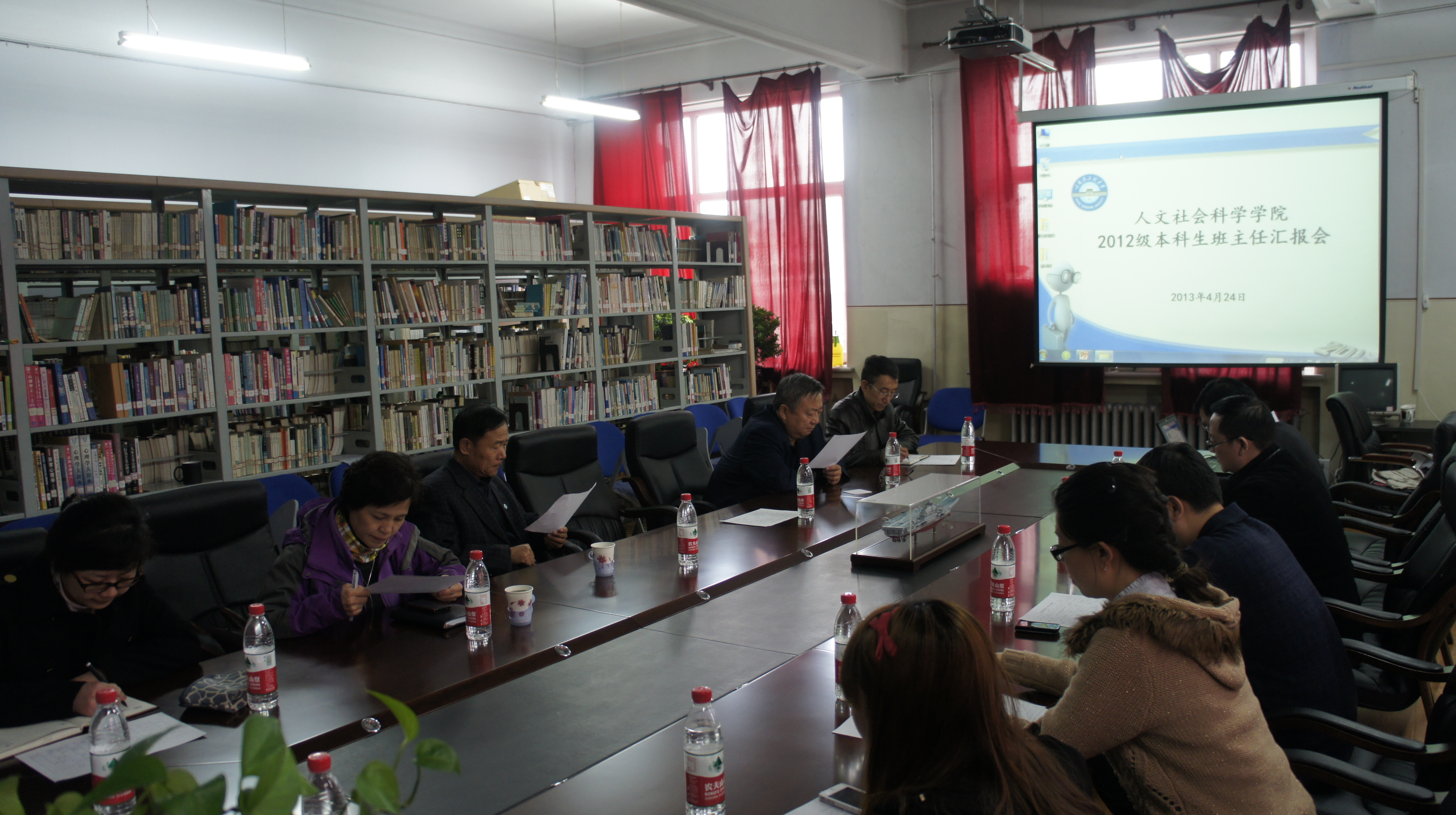 4月24日下午4点,BB贝博艾弗森官方网站2012级本科生班主任汇报会于41号楼BB贝博艾弗森官方网站资料信息中心会议室召开 。出席本次会议的有校党委副书记、副校长魏�,校班主任工作办公室主任赵菲,BB贝博艾弗森官方网站院长金宏章,BB贝博艾弗森官方网站党委书记王玉�,BB贝博艾弗森官方网站党委副书记杨国庆,以及BB贝博艾弗森官方网站2012级本科生班主任罗猛、赵融、赵德雷、毕凤玲等。本次会议会由杨国庆主持,会议分为三个部分。