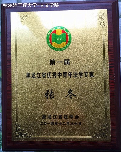 会议期间,进行了黑龙江省首届十大中青年优秀法学专家的颁奖仪式。该活动由省法学会组织开展,面向全省各高校、21个法学研究会、法院及检察院开展,经过初评、复评、公示及审核,历时半年,全省十位法学学者最后入围。BB贝博官网张冬教授获此荣誉称号。