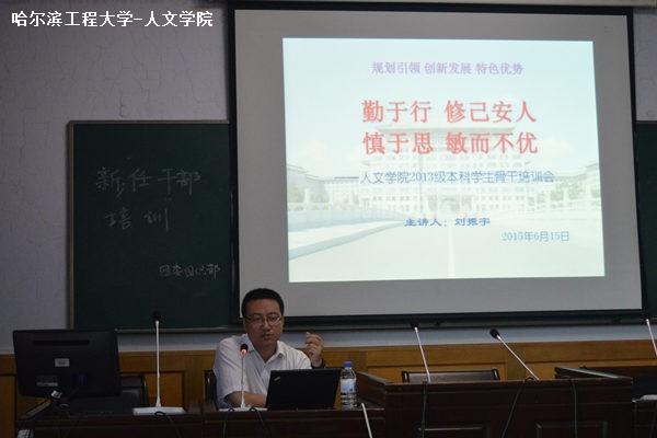 刘振宇书记对新任学生干部进行以“勤于行,修己安人;慎于思,敏而不忧”为主题的培训。培训会主要分为三个部分。首先,刘振宇书记阐述学生工作干部的理念与思考,他着重分析关于干部、领导、管理的看法,指出BB贝博艾弗森官方网站旨在培养高素质创新型人才。然后,他谈到勤行慎思之道修己安人,强调“三严三实”的核心是“严”,关键在“德”,并就如何修己、如何安人分条分析。最后,他总结道:战略、规划、细节、执行决定成败,并对学生干部的工作理念和工作看法进行指导。