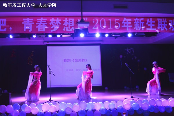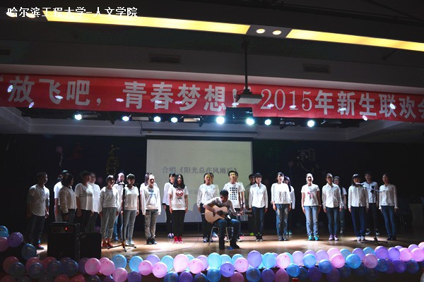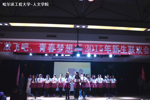 晚会以精心编排的《Ayo》舞蹈开场,将热情和温暖传递给在场的每一位观众。2015级学生以班级为单位依次表演合唱节目,彰显同学们的集体意识,唱出他们对大学生活的憧憬与理想。其中,周群利、冯永亮的相声《穿越梦》引来全场喝彩;李诗妍、陈佳慧等同学的小品《绝世》诙谐幽默;吉他弹唱和别具少数民族风情的歌曲串烧尽显各名族学生的独特风采;一曲惊鸿舞展现舞者别致魅力。晚会在2013级学生干部合唱《我们是一家人》中走向尾声。主办方播放了军训教官对新生寄语的视频,引领新生回忆军训的时光。