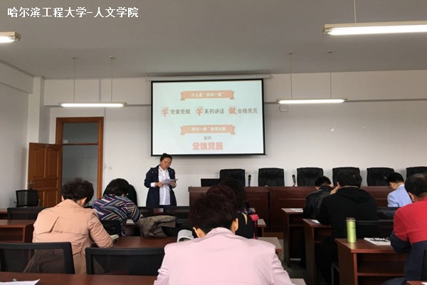 马克思主义中国化支部书记吴春莺做了“学党章党规、学系列讲话、做合格党员”的主题发言,介绍了“两学一做”相关内容及学习计划。思想政治教育党支部书记刘贵占组织了“《党章》知识竞赛”,王林平、向冬梅、陈坤、孟琦、胡雪萍、刘贵占、李世辉、杨志刚等8位党员获得了竞赛一等奖,多数党员的成绩达到90分以上。