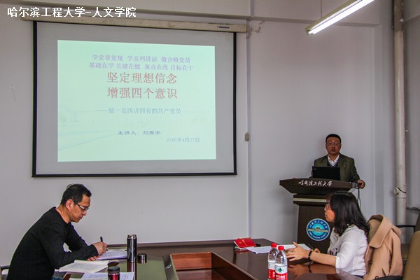 首先,由刘沫茹书记介绍“两学一做”学习教育的背景、主要任务和具体安排。其次,以“牢记党的宗旨,坚定理想信念,做合格共产党员,争当推动学校‘十三五’建设的先锋模范”为主题由刘沫茹书记进行学习汇报;主要内容包括何为“两学一做”、“两学一做”的要求和内容、教育部关于“两学一做”的部署、哈工程“两学一做”的实施方案,尤其是教师党员与学校“十三五”发展建设等五个方面。在详细讲解此次专题学习的相关内容的基础上,注重理论联系实际,突出了学习与具体工作的结合。随后,与会的各位党员就专题内容进行了热烈的讨论。