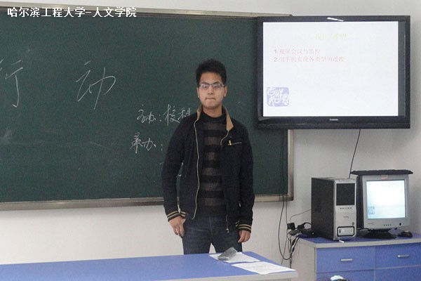 活动开始,主讲人王强进行自我介绍,与同学们交流,增进与同学们的亲切感。然后王强播放与课堂内容相关视频,循环渐进切入主题。之后,王强向同学们介绍智能手机的应用和互联网在当代的巨大作用,询问同学们对互联网有何感想,在场学生认真倾听并积极发言。活动最后,袁鑫炀、王强为在场每一位同学分发了小礼物并预祝同学们学习进步。