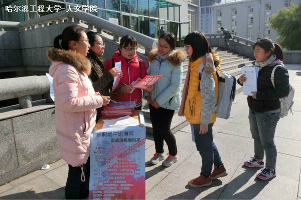 此次宣传主题为“求职场中论博弈,实战演练展风采”。工作人员向在校学生发放宣传单,热心介绍本次知识竞赛主要内容。此次竞赛分为笔试与面试两大环节。笔试部分将精确模拟公务员行政职业能力测验,决赛则以现场答题和面试的形式评定成绩。竞赛的报名方式包括现场及线上,现场报名踊跃。