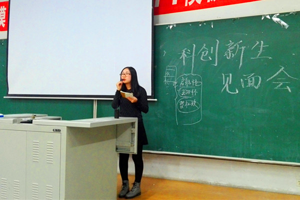 见面会共分为两部分。首先,王俊涛深刻剖析了什么是科创,我们为什么要重视科创,并结合他自身经历及在科创活动中的所见所闻为同学们做了精彩讲解。接着,张新新介绍了她作为科创比赛的评委所发现的同学们在比赛中常见的问题,并就参与科创应具备哪些素质、在科创活动进行答辩时应该注意的问题进行讲解。