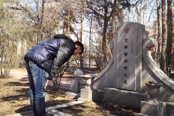 活动开始前,全体成员在七公寓集合,一起前往南通大街公交站乘坐公交至哈尔滨烈士陵园。然后,活动于下午一点正式开始。胡天赐担任活动主持人,带领同学们为烈士献花,并在烈士墓前默哀三分钟,以表崇敬之意。接着同学们对先烈墓碑宣誓,最后大家在园内进行集体参观,共同怀缅烈士精神。