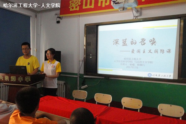 (宣传中心记者团记者 房仕琪报道)7月7日下午1时20分,学院赴黑龙江密山市“亲密行动”暑期实践团于兴凯湖中学多媒体教室举办爱国主义国防教育系列讲座。本次讲座由杨檬、陈敏行担任主讲人,兴凯湖中学部分学生及实践团全体成员参与本次讲座。