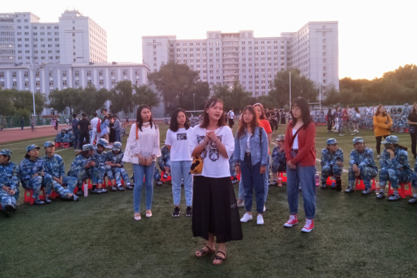 晚上6时,新生团体辅导开始,学生组织干部按照事先分好的小组开展活动。首先,学生组织干部与新生进行了游戏,团体辅导的游戏有滚雪球,揉肩捶背等,通过游戏环节,活动的氛围热烈了起来。然后2019级新同学进行了个人才艺表演、团体合唱。操场上欢歌笑语,气氛十分融洽。最后,新生们与学生组织干部一起聊天,初步了解了自己的专业以及学生组织部门的情况。