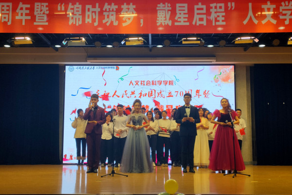 第一个节目是由研一同学彭珊带来的英文歌曲《Yesterday Once More》,动听的歌曲让人意犹未尽;接着,彭文洋同学表演的独舞《惊鸿舞》动作优美,引人入胜;20191311班带来的集体合唱节目《不同的我们相同的天空》,使所有人更加珍惜彼此成为同学、师生的缘分;由卢宇佳演唱,齐鑫伴舞的《乌兰巴托的夜》让人感受到夜晚的静谧与美好;原泉老师的歌曲《五月的华尔兹》,为晚会营造出轻松、欢快的气氛;张海娇、沈禹含同学带来的吉他弹唱《她说》,使大家都沉浸在安静的吉他声中;20191342班带来了歌曲《我们都是追梦人》,表达了新时代青年追求梦想的勇气与决心;由尚育名等同学自编、自导、自演的话剧《上学那些事》生动展现了大学师生、同学之间的美好情谊。