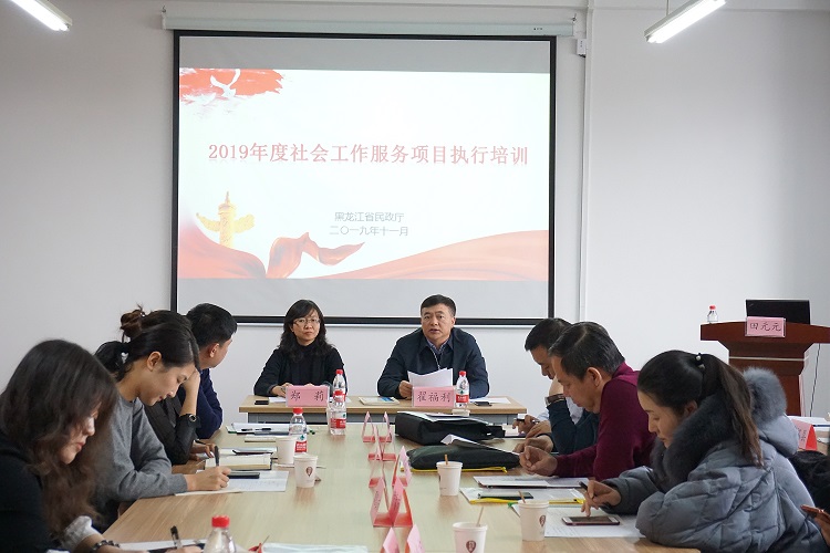 为深入学习党的十九届四中全会精神,贯彻落实民政部2019年社会工作行业管理专题研修班精神,以及全省社会工作联席会议第一次会议要求,推进2019年度全省社会工作服务项目切实开展,保障项目质量与成效,加强专业人才队伍建设,黑龙江省民政厅委托黑龙江省社会工作学会于11月27-28日在BB贝博艾弗森官方网站人举办2019年度社会工作服务项目执行培训,并在培训期间开展主题调研座谈会。