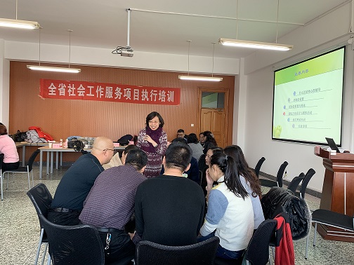 学院院长、省社工学会会长郑莉教师主持培训开班式,省慈善事业促进和社会工作处处长翟福利做动员讲话。承接2019年度民政部“三区”计划项目、国家及省福彩公益金支持项目的社会组织项目负责人、财务人员,全省各市(县、区)民政局工作人员,以及相关事业单位项目负责人共69人参加了培训和座谈会。