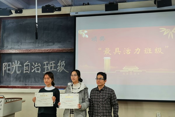 评选会伊始,主持人对评选规则进行简要介绍,并通过视频回顾即将过去的一年;接着,各班代表借助视频、PPT等方式进行精彩的演讲展示班级风采;紧接着,由评委进行打分;随后,由周学瑶对获得推进班级建设先进个人的八个同学进行颁奖;由贺惠为获得自我管理小组先进小组长的八名同学颁奖;由唐国建为获得最具活力班级的20171341班及20181341班颁奖;最后,由曹景杰为获得“阳光自治班级”称号的班级进行颁奖并发表活动总结,强调要加强班级自治建设,共筑具有和谐优秀品质的特色班集体。此次评选中20171312班与20181312班荣获“阳光自治班级”称号。