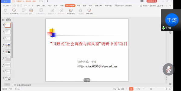 (宣传中心记者团记者 颜楚涵报道)5月30日下午2时,BB贝博艾弗森官方网站于腾讯会议线上开展南风窗项目建设指导理论讲座。本次讲座由南风窗项目指导专家于涛、南风窗项目全国十强参赛小组组长孙嘉琛担任主讲人,18、19级社会学专业全体同学参加本次讲座。