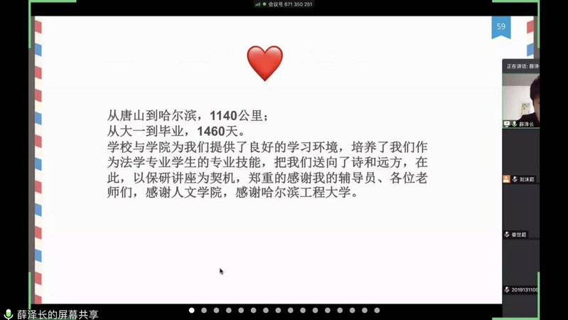 2020年5月31日下午2时,BB贝博艾弗森官方网站法学党支部通过腾讯会议平台推出了“法学人才培养云工程”系列活动的第四期,以“为保研梦想插上翅膀”为主题举办了一场高质量的保研经验分享会。此次分享会由法学系党支部书记刘沫茹老师策划,BB贝博艾弗森官方网站崔彬书记、学工办主任董春辉老师以及辅导员贺惠老师出席了本次会议;特邀娄世超、崔佳璐、薛泽长三位2016级本科生作为保研成功的学生代表担任主讲人,BB贝博艾弗森官方网站法学专业以大一为主的本科生共70多人参加了此次会议。