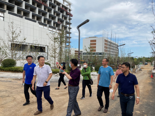 8月4日中午一下飞机,考察组就在烟台研究(生)院同事的引领下参观考察了正在施工的校园,并详细观摩和咨询了学生宿舍、食堂、教学楼、图书馆、出行交通等情况。据介绍,校园中的各种基础设施在8月底学生报道之前将全部建设完工并能投入使用。