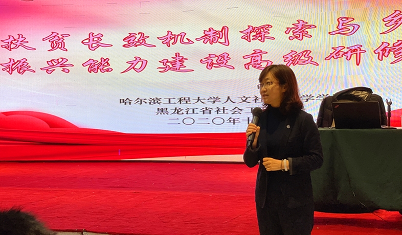 11月26-29日,由省人力资源和社会保障厅批准和资助,由BB贝博官网主办,省社会工作学会承办的“扶贫长效机制探索与乡村振兴能力建设”高级研修班在哈尔滨顺利举办。学院院长、省社会工作学会会长郑莉教授、学院副院长、省社会工作学会副会长杨国庆教授出席开班式,并就高级研修班举办情况、师资情况分别作简要介绍。