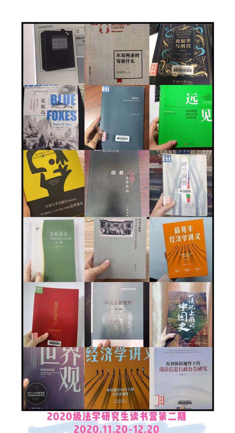 法学研究生读书营源于教师法学党支部书记刘沫茹老师的号召,旨在带领在校法学学生“一个月读一本好书”,遂于2020年10月正式创建了“读书营”。读书营平时通过微信群展开线上活动,每期读书营有开营仪式,由同学们选择拟阅读书籍拍照上传,所有书籍集结成图片留念,增加读书营的仪式感;微信群里可以随机分享阅读感受,在全书阅读完毕后还对书籍逐一进行评星,以为他人阅读提供参考依据。读书营开展两期后,应同学们的期待举办了这次分享会;同学们带着自己的阅读书籍,在轻松愉快的氛围中进行了面对面的交流。