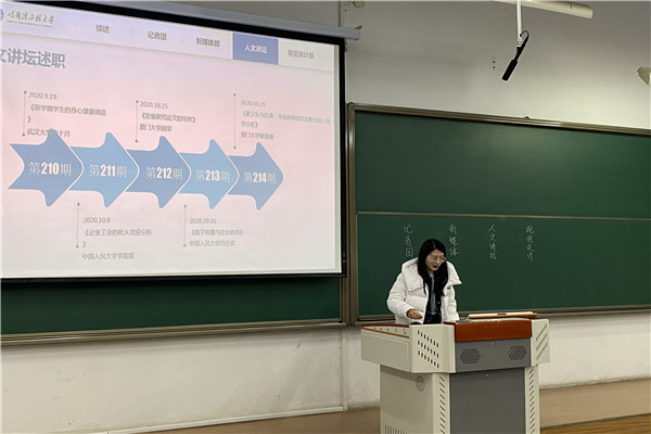 会议伊始,在全体成员自我介绍环节后,战莹对宣传中心的整体工作情况和取得成就进行总结;然后,宣传中心记者团部长李雨桐、新媒体部长马俊玉、人文讲坛部长吴欣怡、视觉设计部长刘卜漫分别根据部门工作情况、工作不足、工作展望进行述职;最后,鞠宇豪对本次述职大会进行总结,并对各部门的工作问题提出建议,明确了未来宣传中心的工作任务和目标。
