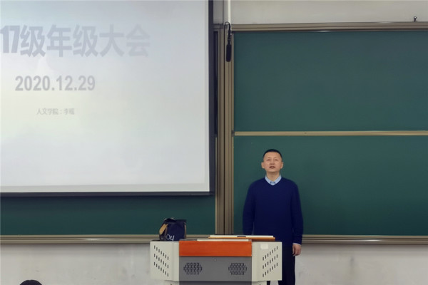 (宣传中心记者团记者谢梦璇、钟栎泳报道)12月29日上午10时,2017级年级大会于主楼N201教室如期开展,2017级学生辅导员李瑶担任此次大会的主讲人,BB贝博艾弗森官方网站党委副书记曹景杰出席会议,2017级全体同学参加。
