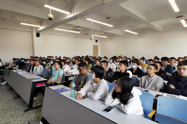讲座开始,贺惠首先向同学们介绍了专业和学科的教学计划及安排。随后,详细向同学们讲述各专业的课程设置以及教学管理和学籍管理的有关规定。最后,系主任张翼飞为大家讲解了辅修和转专业的相关内容,并对同学们提出的问题进行解答。