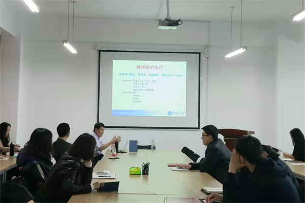 会议伊始,由刘文璟介绍与会嘉宾。然后,由孔德生为同学们讲解心理健康有关知识。在会议中,孔德生围绕心理健康辅导主题,向大家介绍了心理咨询原则和心理障碍类型及治疗方法,通过生动有趣的例子向同学们展示了不同类型的心理问题和相对应的辅导方法。依据DSM- V,孔德生针对近年来频繁出现的异装癖和恋物癖进行了经典案例展示,向大家介绍了人格障碍的三大类别,并结合反社会型人格障碍现实事例为大家讲解治疗方式。孔德生针对大学生心理障碍的表现及治疗方法进行讲解,结合现阶段大学生面临心理健康问题的实例,要求各班心理委员明晰自身工作的重要性,培养服务角色意识,进一步贴近同学实际,深入了解同学们的心理健康状况。最后,会议进行提问环节,孔德生针对各班心理委员所提问题进行解答,并对其日后相关工作提出意见与建议。