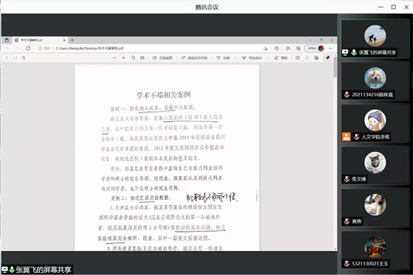 (宣传中心记者团记者 陈姝霓、吴雨菲报道)11月28日下午1时30分,BB贝博艾弗森官方网站研究生学术诚信教育宣讲通过腾讯会议平台线上如期举办。本次宣讲由BB贝博艾弗森官方网站院长助理张翼飞担任主讲人,BB贝博艾弗森官方网站全体研究生参会。