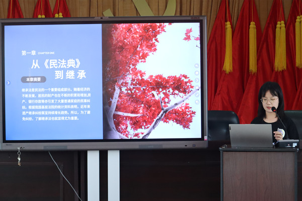 讲座伊始,李彬宁同学强调:因亲人去世而产生的财产继承纠纷已经不是富人或名人的专利。随着经济不断发展,居民的财产也在不断积累增加,房产、银行存款等亦引发了大量普通家庭的继承纠纷。所以,为了避免和化解纠纷,了解继承法尤为重要。接着,申奥从编纂《民法典》的重大意义引入主题,围绕继承法的相关概念、继承的种类及继承法上认识的误区三个方面展开讲述。在宣讲过程中,申奥同学详细地讲解了法定继承和遗嘱继承的范围及具体内容,并重点讲述了在继承权享受上应注意的问题、法定遗嘱遗产分配的原则、口头遗嘱的注意事项、影响遗嘱效力的因素和遗嘱的撤销及变更,语言生动,条理清晰,引起了村民们的高度兴趣。同时,李彬宁将具体法条与现实社会生活中出现的鲜活事例相结合,以案释法、深入浅出,给当地村民上了一堂生动的法治课。最后,申奥表示无论是遗嘱继承还是法定继承,要减少矛盾和纠纷都离不开家庭成员的理解和配合,并呼吁广大村民在遇到问题时,要学会寻求法律途径,运用法律维护自己的合法权益。