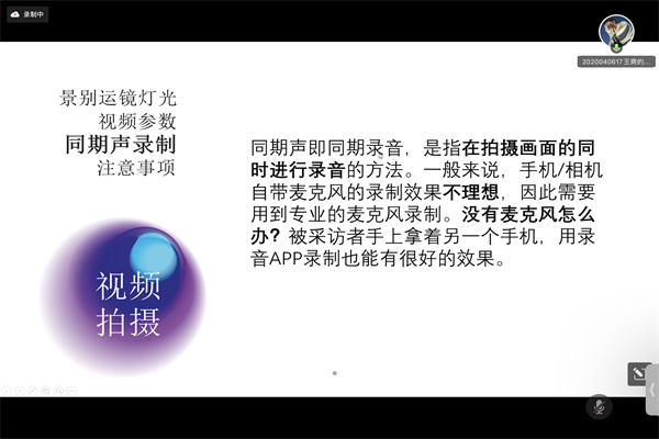 培训会伊始,主讲人王爽介绍了本期培训内容分别是视频拍摄的前期规划、视频拍摄过程中的注意事项和视频的剪辑。随后,王爽对短视频的选题、做脚本、分镜等方面知识进行详细讲解,向同学们展示了视频剪辑的重要性。接着,王爽指出了视频拍摄与剪辑容易出现的问题,例如画面抖动,角度不好,卡点不准等,提醒同学们要格外注意这些问题。同时,王爽建议同学们要平时多加积累素材、注意拍摄构图和视频调色等。最后,暑期培训01期在同学们的踊跃提问与主讲人的答疑中完美落幕。
