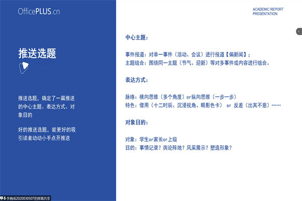 本次培训主要围绕宣传“三要素”、推送策划写作及人物通讯写作三方面展开。首先,李炳成简单介绍了宣传“三要素”的素材内容、制作过程及宣传途径。接着,李炳成详细地阐述了一篇推送的诞生过程,分为确定主题、找寻素材、文案制作及推送审核四个阶段。其中,针对文案制作,他着重讲解了梨花体的写作规范及用法。随后,李炳成介绍了人物采访的方法,并列举了通过人物沟通和从媒体获取信息两个途径了解人物的方法。同时,李炳成指出要及时确定采访时间及方式,与被采访对象保持密切联系,采访内容要注重保证大方向、细挖小细节。最后,李炳成重点强调在采访过程中要注意对受访者的隐私保护、特殊处理及塑造形象这三大原则问题。
