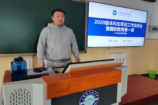 (BB贝博艾弗森官方网站记者团记者贾鹏、赵丰报道)4月15日上午8时,人文社会科学学院于11号楼112教室举行2020级本科生军训动员会暨国防教育第一课,2020级本科生军训连长兼指导员刘文璟担任主讲人。