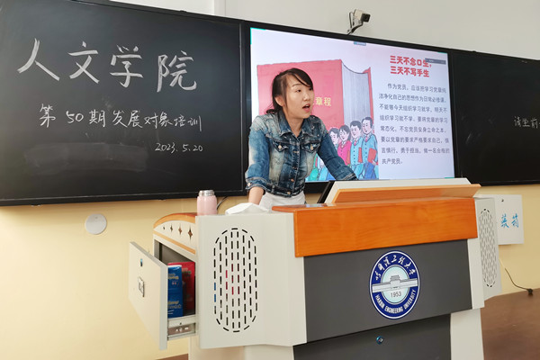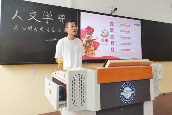 活动伊始,曹景杰点明了发展对象培训活动的意义,并从认识论的角度阐明认识的重要性,激励同学们积极主动学习。随后,李瑶重点阐述发展对象转为预备党员的条件与程序,徐佳璐对《党章》以及新形势下党内政治生活的若干准则进行讲解与分析,刘文璟突出中国共产党百年精神谱系,希望同学们能深刻理解中国共产党的发展历程与伟大精神。最后,周鹏以中国共产党的历史为题,讲解了哈军工的光辉历史与伟大精神在现代的传承与发展。